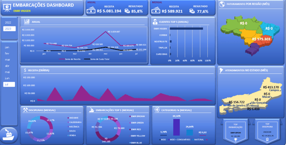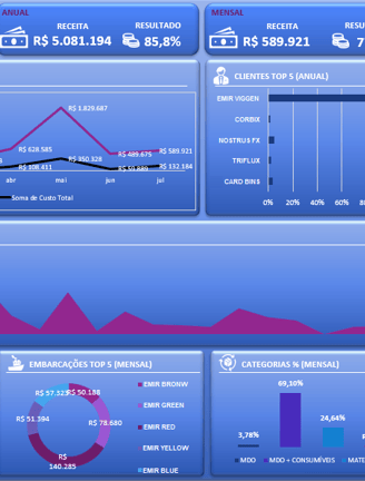 É possível visualizar a gestão de custo e receita em todas as fases do projeto através de dash bórds personalizados, descomplicando a gestão e a tomada de decisões, vistos através de gráficos e índices personalizados.